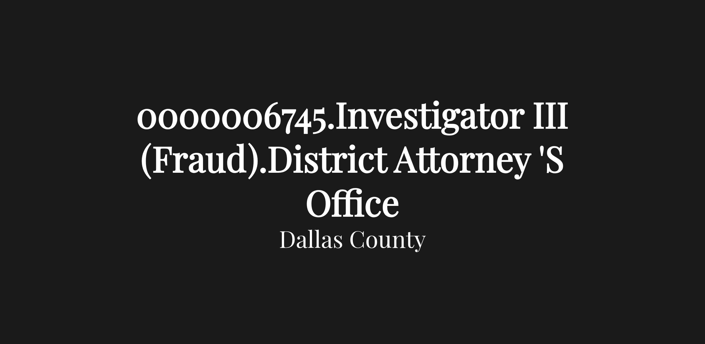 Must be a Certified Peace Officer and proficient in the use of a firearm. Knowledgeable of investigative techniques and ability to communicate both orally and in writing with a diverse group of individuals. Skilled at applying interviewing techniques while assisting the prosecutors in adverse or hostile conditions. Must pass criminal background investigation. Mandatory drug test prior to and during employment. Certified Fraud Examiner (CFE), Certified Public Accountant (CPA), Certified Internal Auditor (CIA), or Chartered Financial Analyst (CFA) is required. Knowledge of Generally Accepted Accounting Principles (GAAP) and standardized financial practices; federal, state and local government codes; computer systems and standardized financial/accounting software. Ability to interpret financial data and identify fraudulent activities; organize information into presentations; prepare exhibits, graphs and/or flowcharts. Must possess a valid Texas Drivers License and good driving record. Will be required to provide a copy of 10-year driving history. Must maintain a good driving record and remain in compliance with Article II, Subdivision II of Chapter 90 of the Dallas County Code.