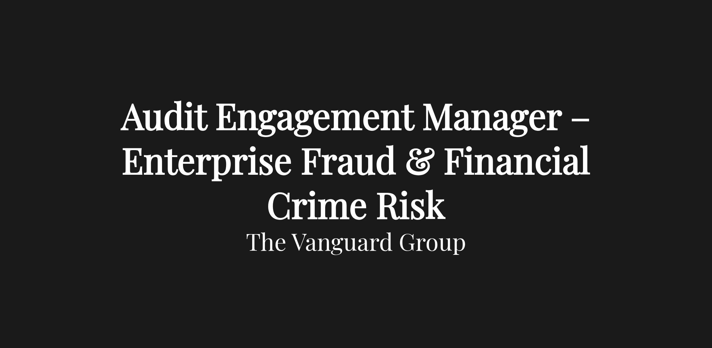 Vanguard’s Internal Audit & SOX department is seeking an Audit Engagement Manager to join our Business & Corporate Audit Services (BCAS) team, with a focus on financial crime and fraud risk. In this role, you will lead risk‑based audit and consulting engagements that assess how effectively Vanguard identifies, mitigates, and governs enterprise‑level financial crime and fraud risks, including those impacting investor protection, funds, and core business processes. You will also support audits across other lines of business and specialty areas, playing a pivotal role in executing audit strategy on key risk topics and partnering with stakeholders to strengthen control environments.
