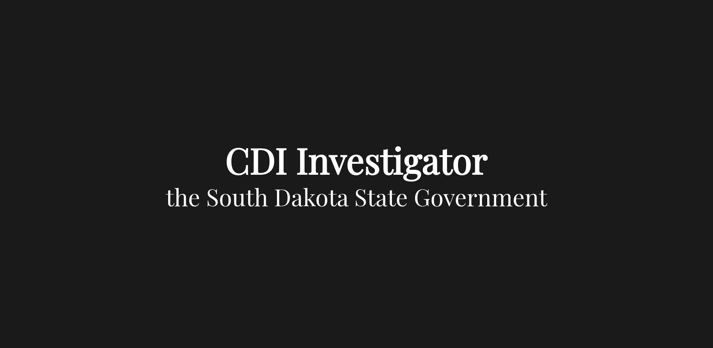 Job ID: 35256 - CDI Investigator Agency: Office of Attorney General / Division of Criminal Investigation Location: Sioux Falls Salary: $33.61 Pay Grade: GHJ Closing Date: 04.17.2026