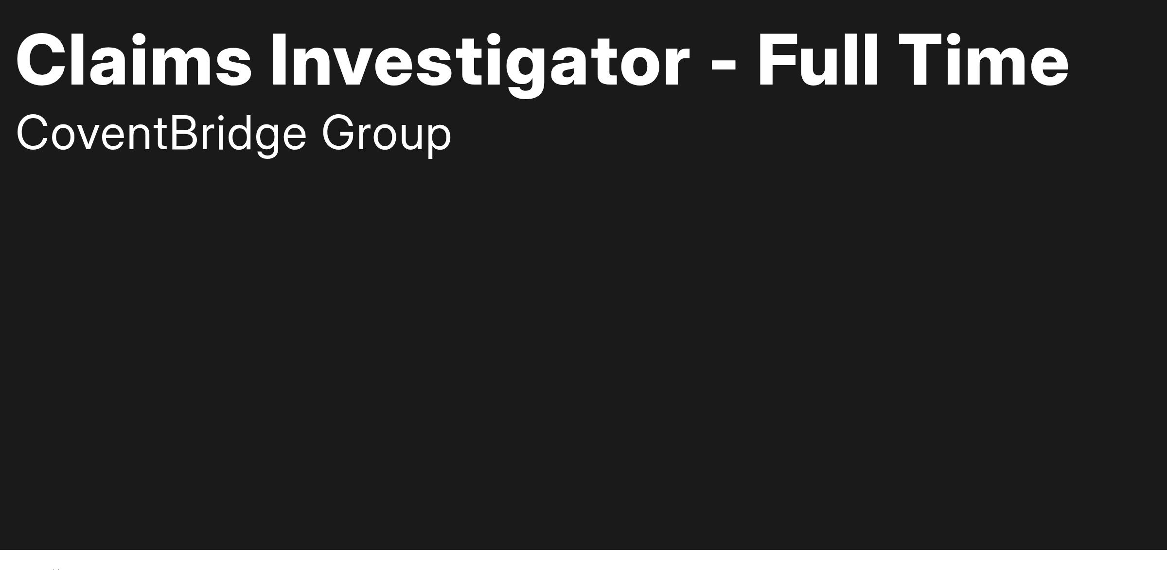 Immediate need for a Claims Investigator within the largest worldwide investigative solutions company. Join CoventBridge Group as it continues its expansion into all areas of investigations, allowing continual growth for its employees.
