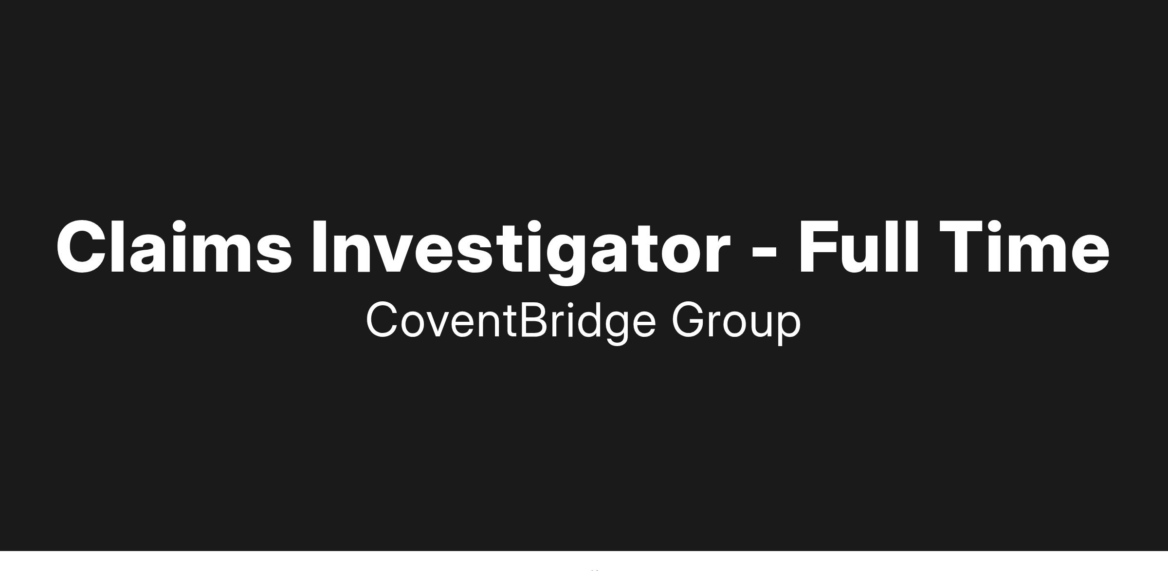 Immediate need for a Claims Investigator within the largest worldwide investigative solutions company. Join CoventBridge Group as it continues its expansion into all areas of investigations, allowing continual growth for its employees.