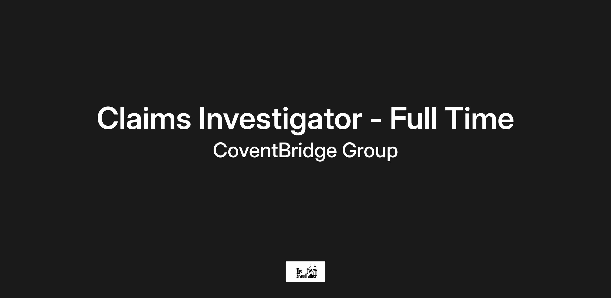 Immediate need for a Claims Investigator within the largest worldwide investigative solutions company. Join CoventBridge Group as it continues its expansion into all areas of investigations, allowing continual growth for its employees.