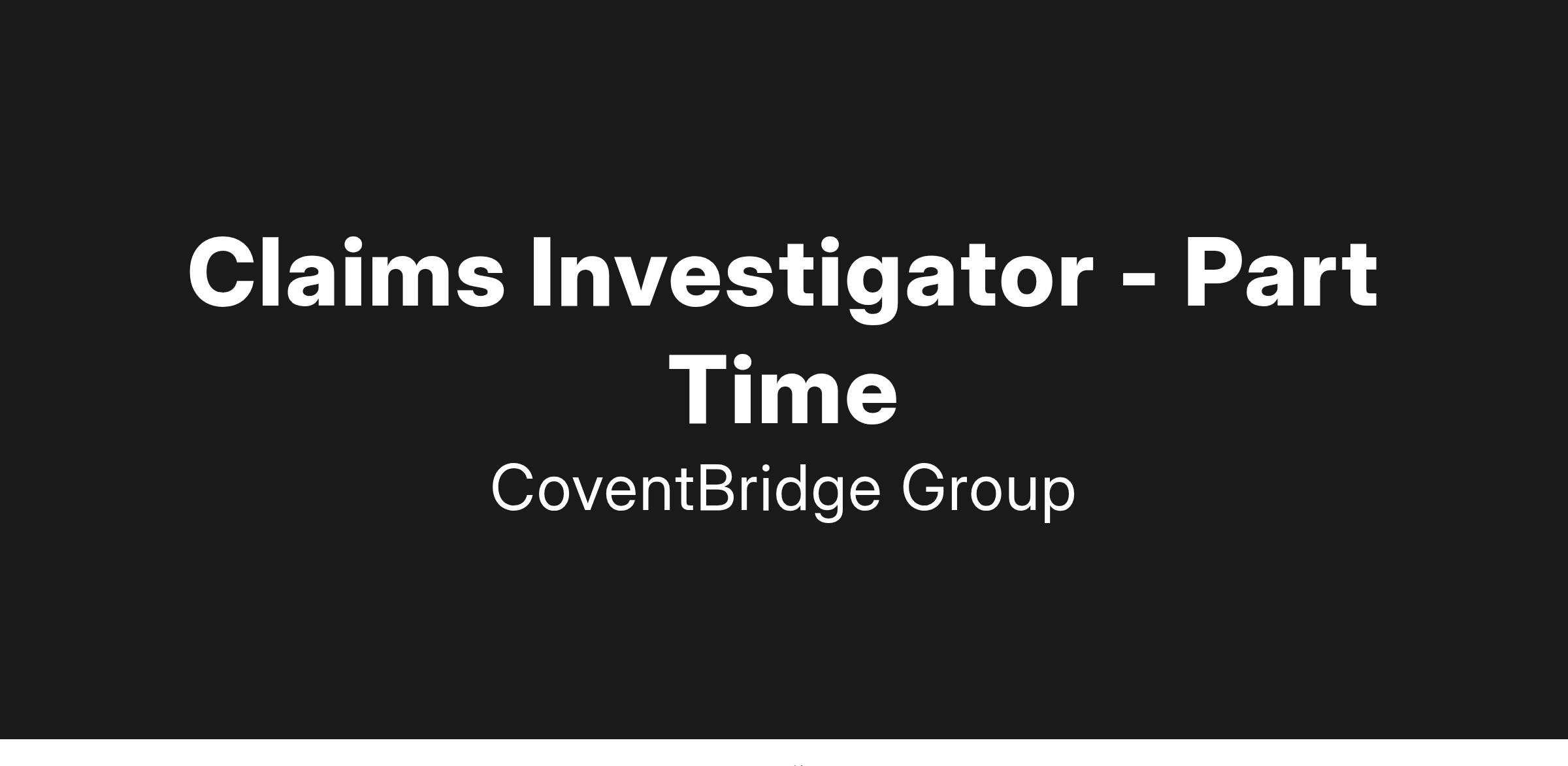 Immediate need for a PT Claims Investigator within the largest worldwide investigative solutions company. Join CoventBridge Group as it continues its expansion into all areas of investigations, allowing continual growth for its employees.