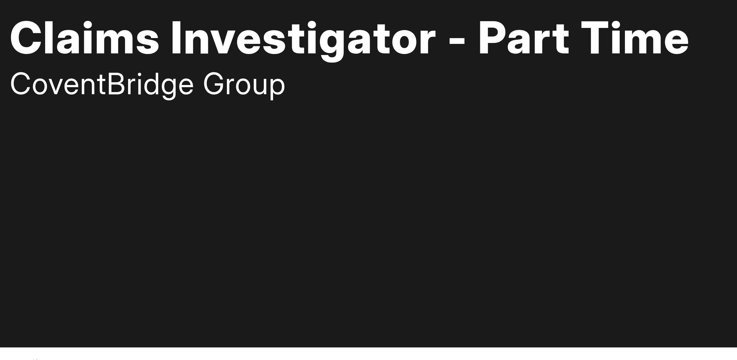 Immediate need for a PT Claims Investigator within the largest worldwide investigative solutions company. Join CoventBridge Group as it continues its expansion into all areas of investigations, allowing continual growth for its employees.