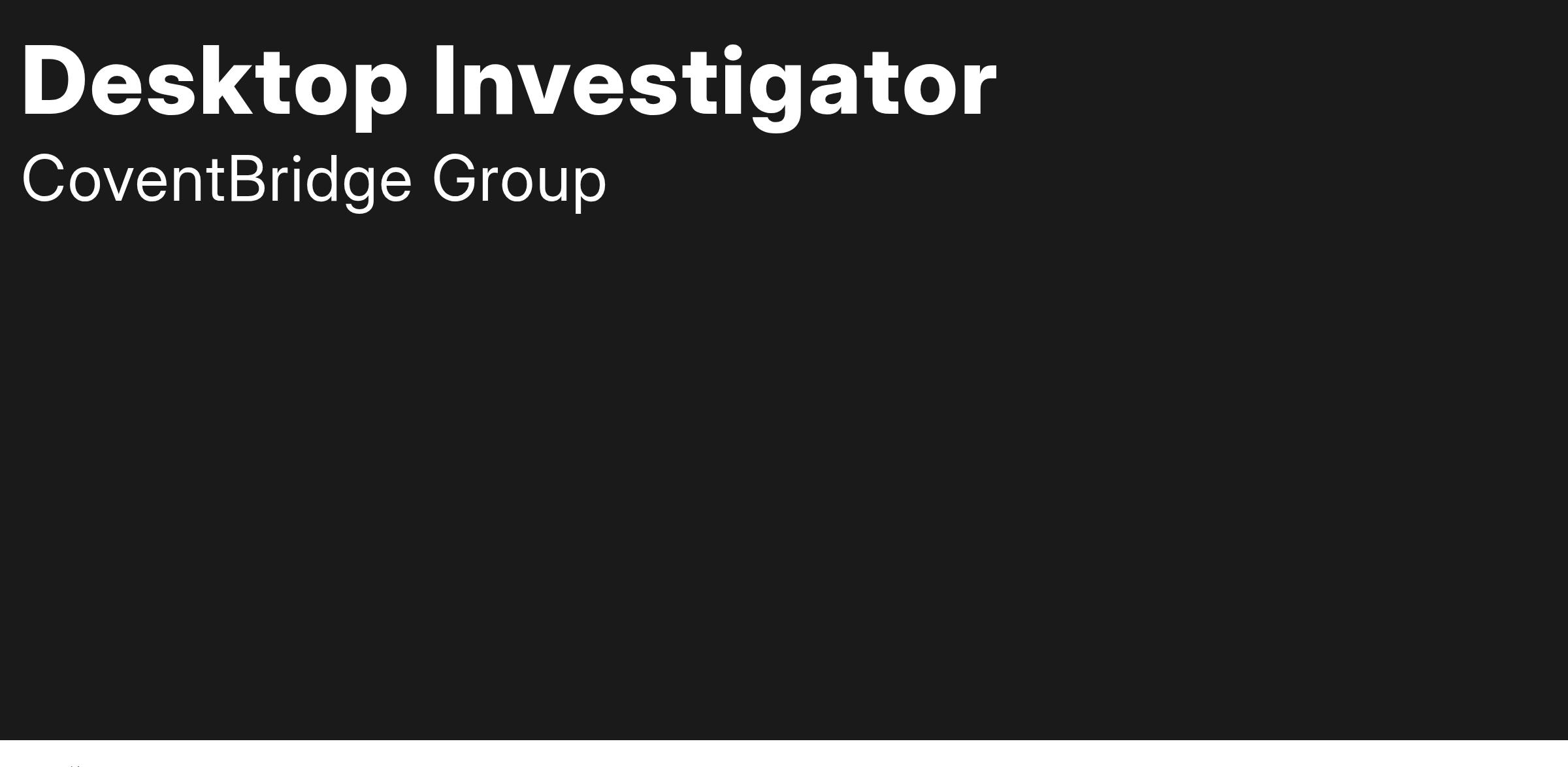 CoventBridge is seeking a Desktop Investigator to join our Desktop Investigation Unit team. The Desktop Investigator position involves conducting investigative assignments through desktop and telephonic means. These investigations include, but are not limited to, background related searches and telephonic medical canvassing. This is a position of trust, as it is a role that requires integrity, confidentiality, intensity and commitment. Desktop Investigators must demonstrate strong verbal and written communications skills and be self-motivated and highly independent.