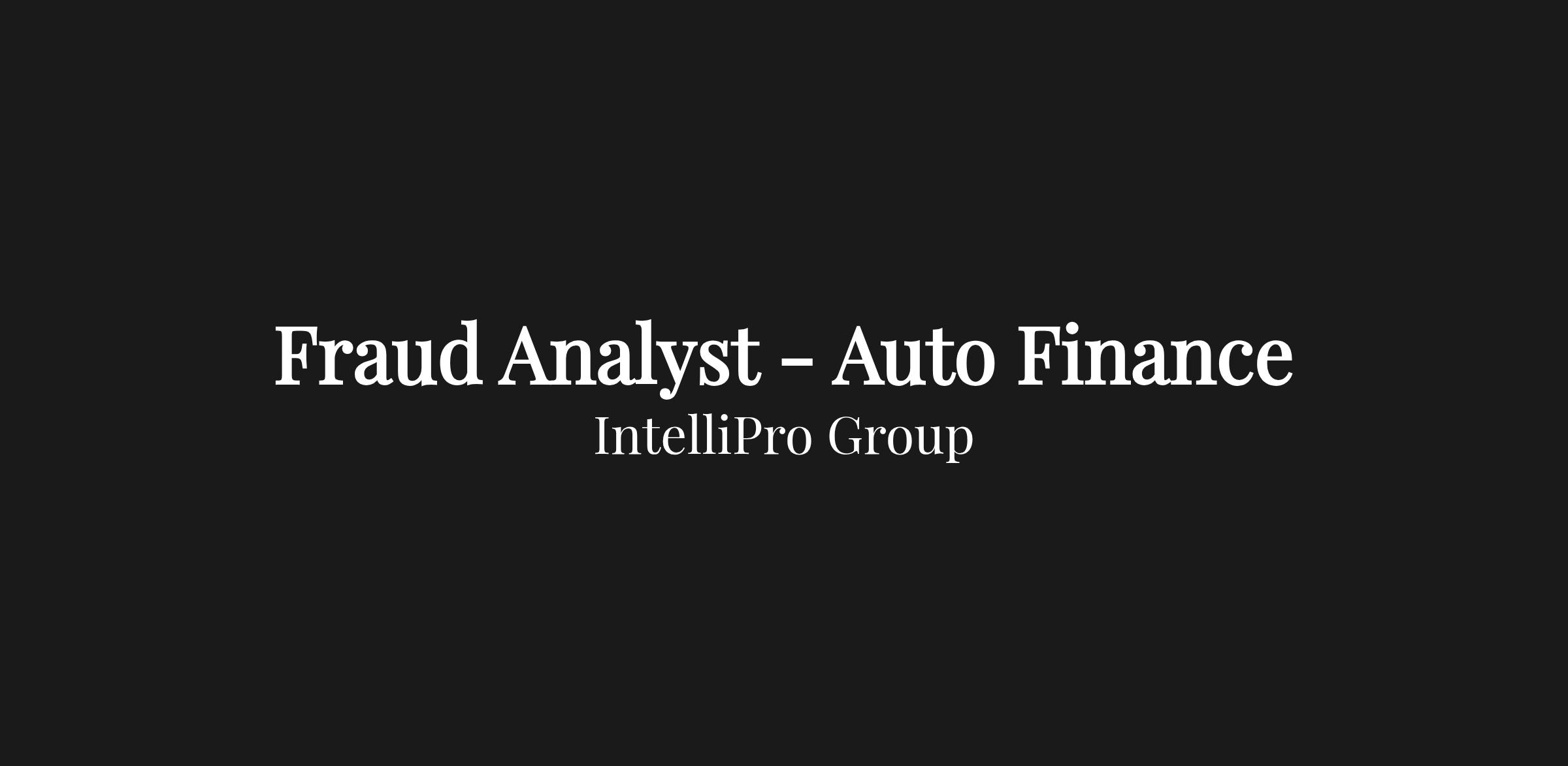 Added bonus if you have (Preferred):- Auto Lending Fraud Experience