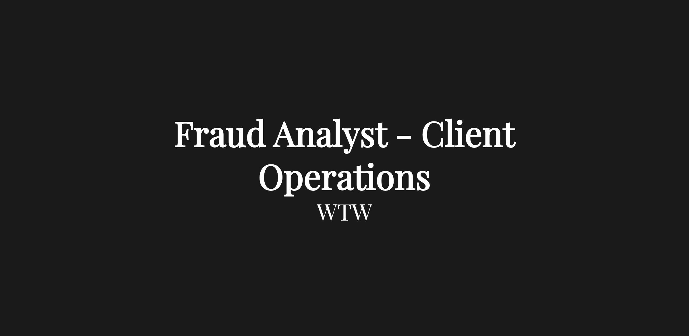 Fraud Analyst - Client Operations