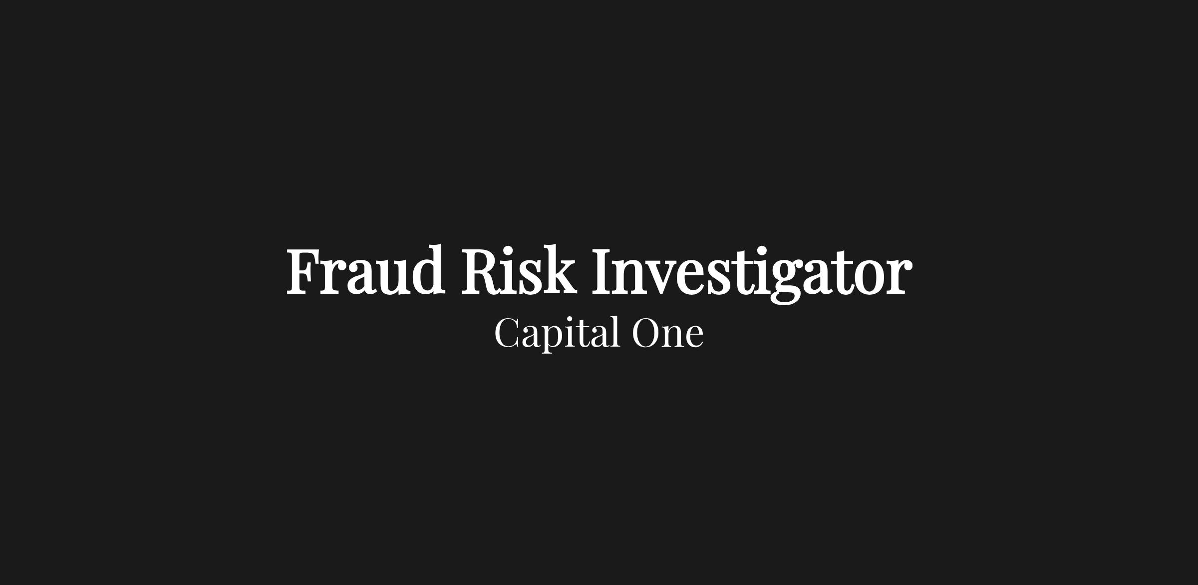 Fraud Risk Services Investigators at Capital One are highly motivated Risk Management professionals with excellent fraud data analysis and investigative skills. Investigators have exposure across internal fraud monitoring functions and are comfortable with external participant reviews, working closely with internal and external teams to identify emerging fraud risks. This role supports root cause analysis efforts and translates fraud data into actionable insights that help identify risks, inform senior stakeholders, through recommendations of mitigation strategies.