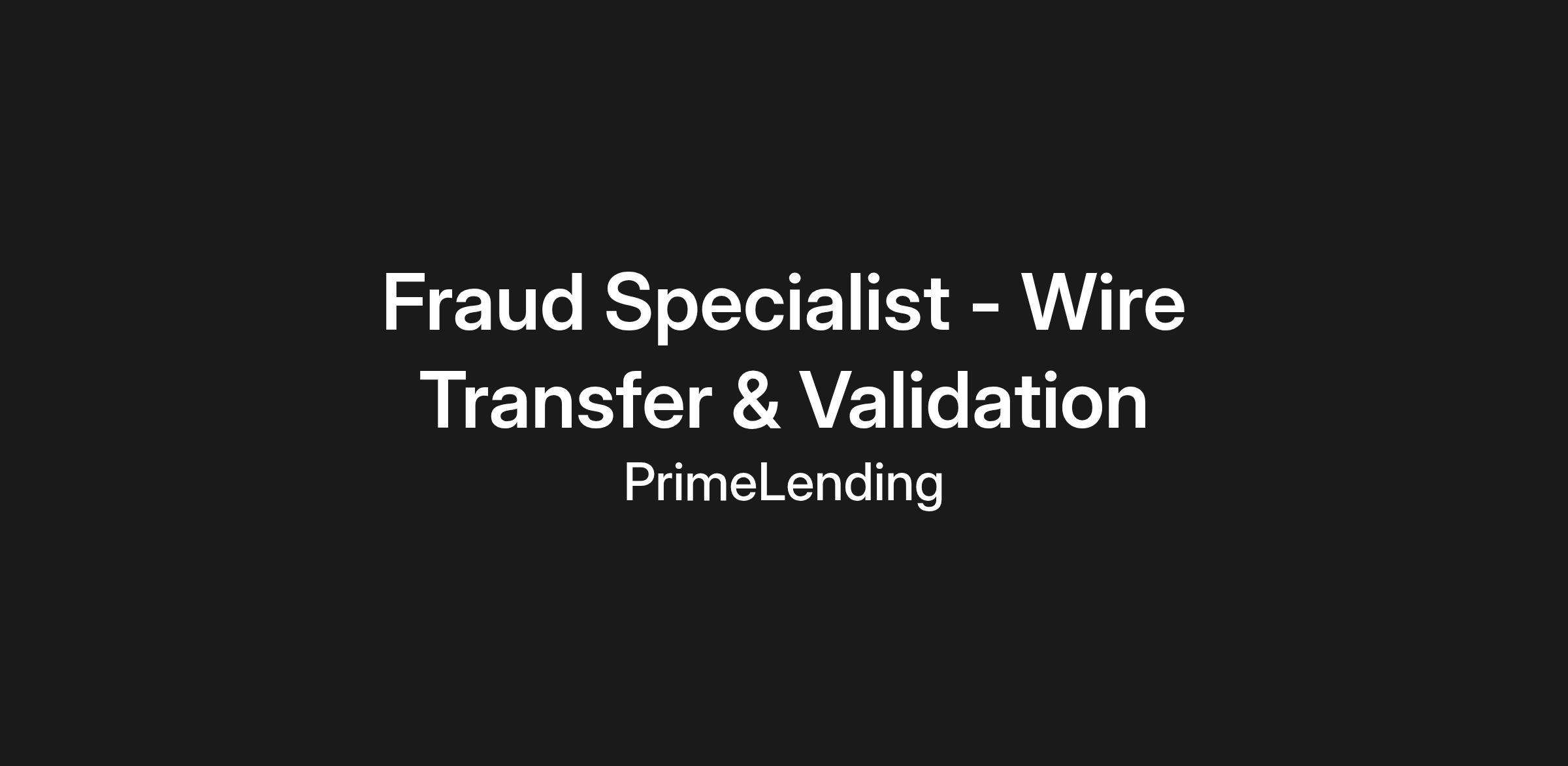 - 3+ years’ Bank fraud prevention experience, with a focus on wire transfer fraud preferred.