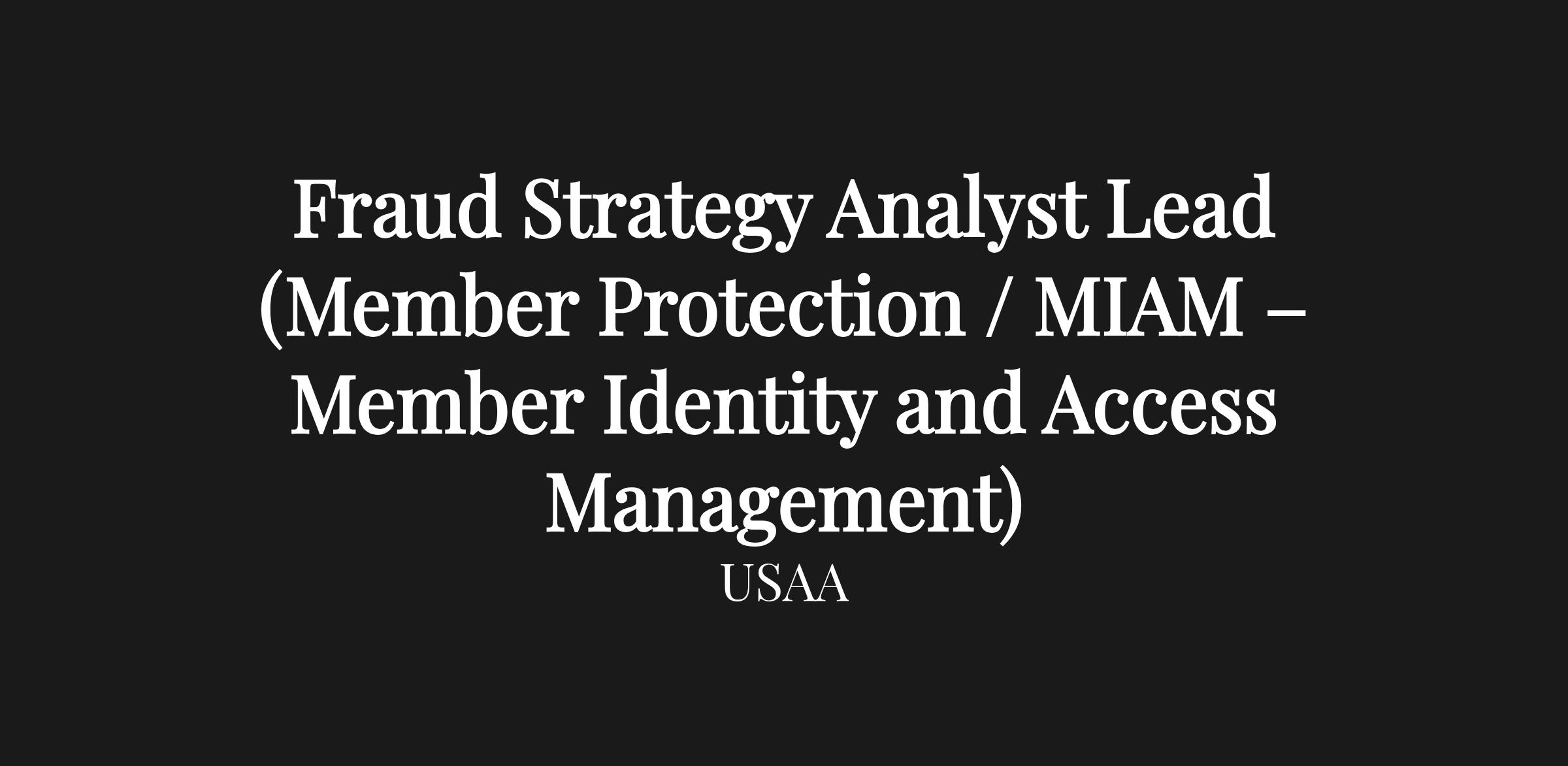 Fraud Strategy Analyst Lead (Member Protection / MIAM – Member Identity and Access Management)