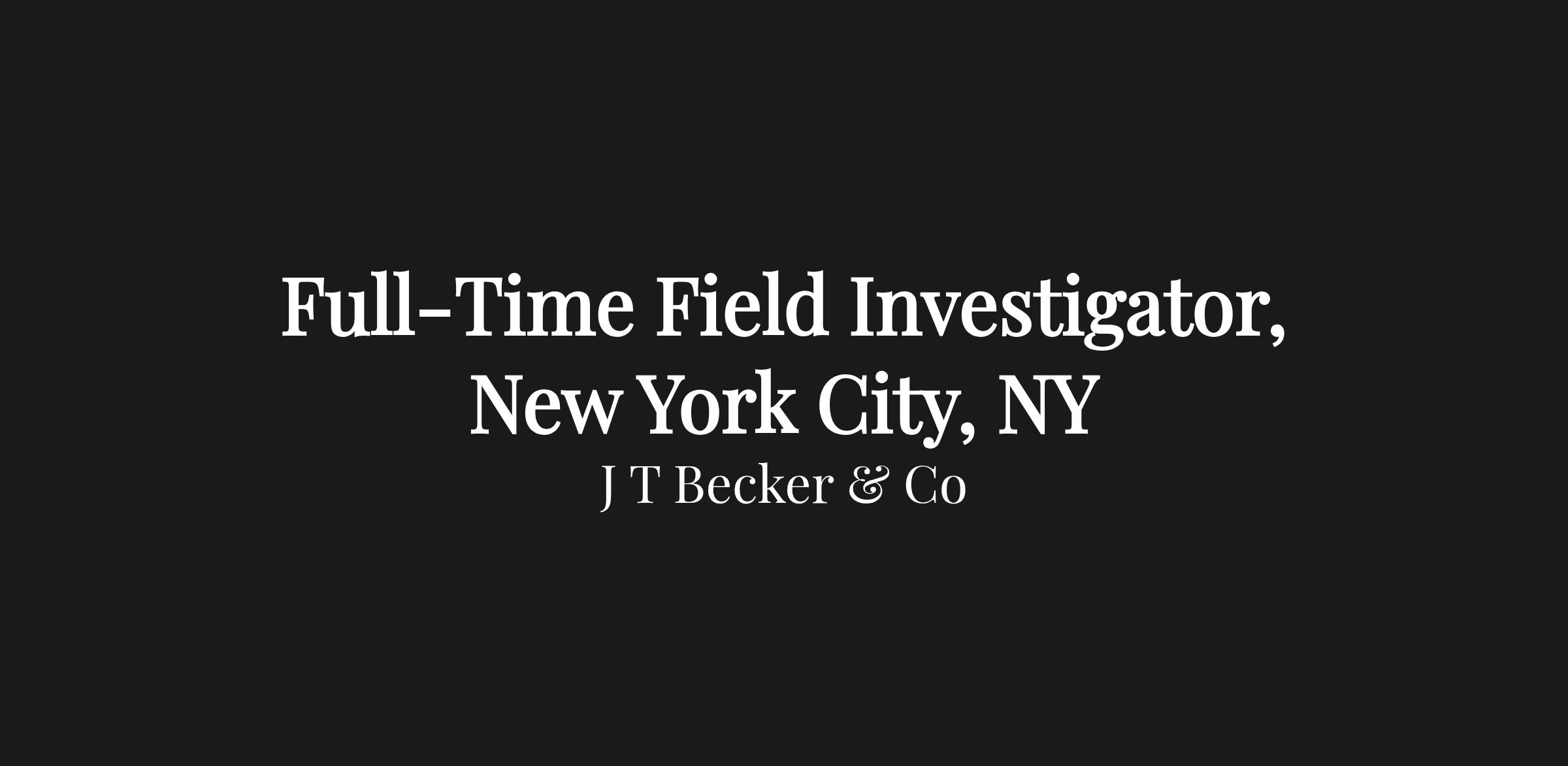 Becker & Company is seeking skilled and experienced Field Investigators to join our team on a Full-Time basis. We investigate all types of insurance claims including workers' compensation, suspected fraud, liability and aimed at mitigating expenses for our clients and delivering high-quality results.