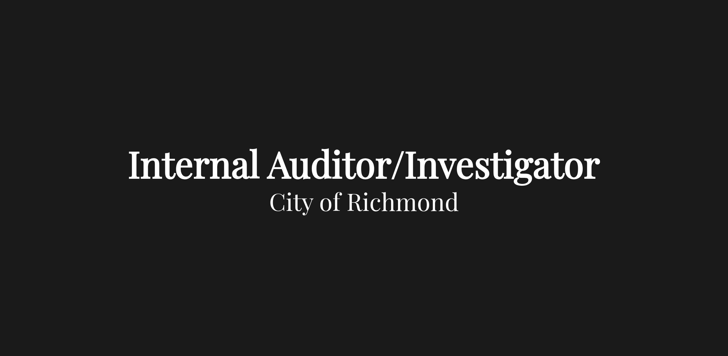 The City of Richmond Office of the Inspector General is seeking a highly qualified candidate to fill the position of Internal Audit Investigator. The aspects of this position are broad in range which entail audits, public trust and integrity efforts, agency compliance, and promoting respective ethical standards. Providing highly professional and complex auditing and investigation services to the City’s agencies, departments, and programs. The position is responsible for planning, coordinating, conducting, and reporting on investigations in accordance with current professional standards and providing recommendations to improve City operations. The position also provides professional, independent consulting services to City agencies and departments. The position will report the results of audits, investigations, research, and analyses through reports and presentations, both orally and in writing.