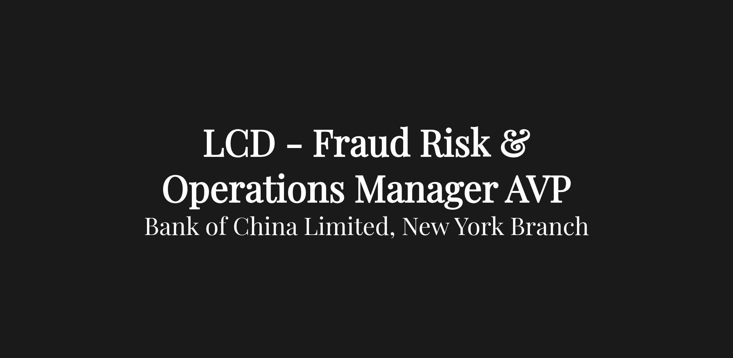 Reporting to the Head of Anti-Fraud, the Fraud Risk & Operations Manager is responsible for the day to day coordination and execution of the bank’s fraud risk management framework. The role helps maintain and enhance the framework for fraud prevention, detection and training across the BOC US (“BOCUS”) organization.