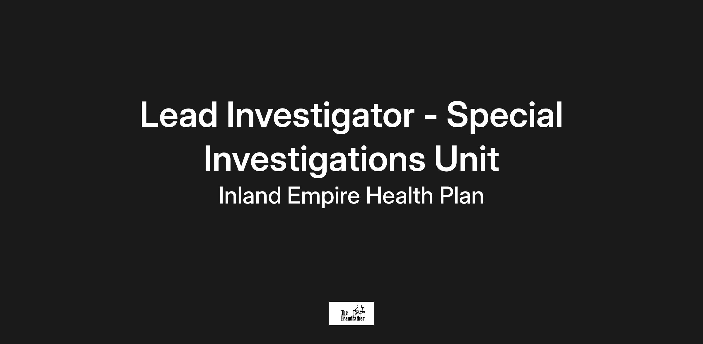 The Lead Investigator - Special Investigations Unit (SIU) (Lead Investigator) is responsible for investigating and resolving high complexity allegations of healthcare Fraud, Waste and Abuse (FWA) by medical professional, facilities, and members. This position researches, gathers, and analyzes data to identify trends, patterns, aberrancies, and outliers in provider billing behavior. The incumbent serves as a subject matter expert for other investigators. The Lead Investigator works collaboratively within the Plan to ensure the proper oversight of IEHP’s FWA Programs. The Lead Investigator is responsible to demonstrate IEHP’s commitment to prevent, detect, and correct identified issues of potential or actual FWA in the healthcare environment to ensure compliance with the requirements set forth by the Centers for Medicare and Medicaid Services (CMS), the United States Health and Human Services Office of the Inspector General (HHS-OIG), the California Department of Managed Health Care (DMHC), and the California Department of Health Care Services (DHCS).