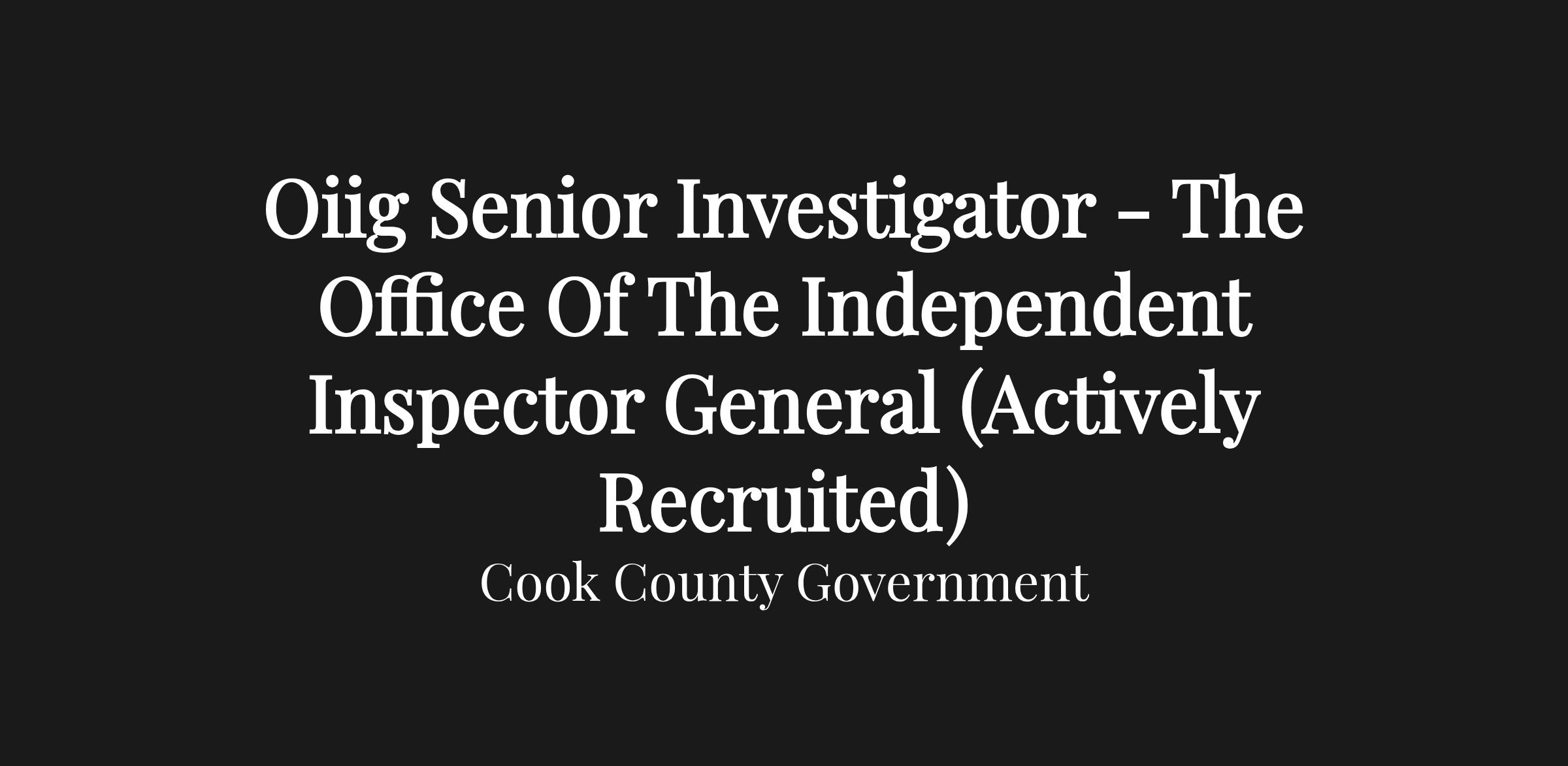Oiig Senior Investigator - The Office Of The Independent Inspector General (Actively Recruited)