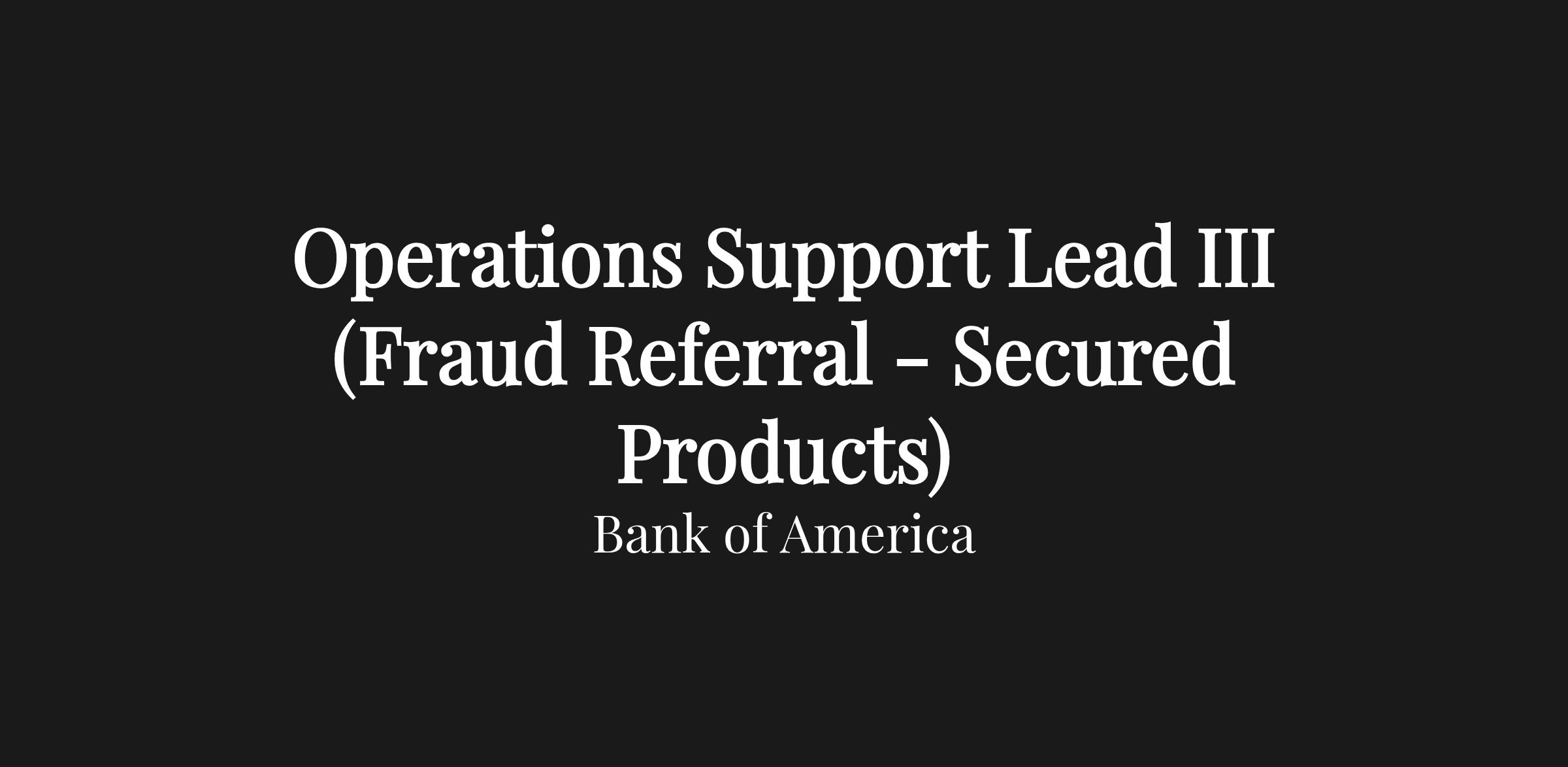Selected candidates will provide support to Fraud Referrals as a function and manager support.