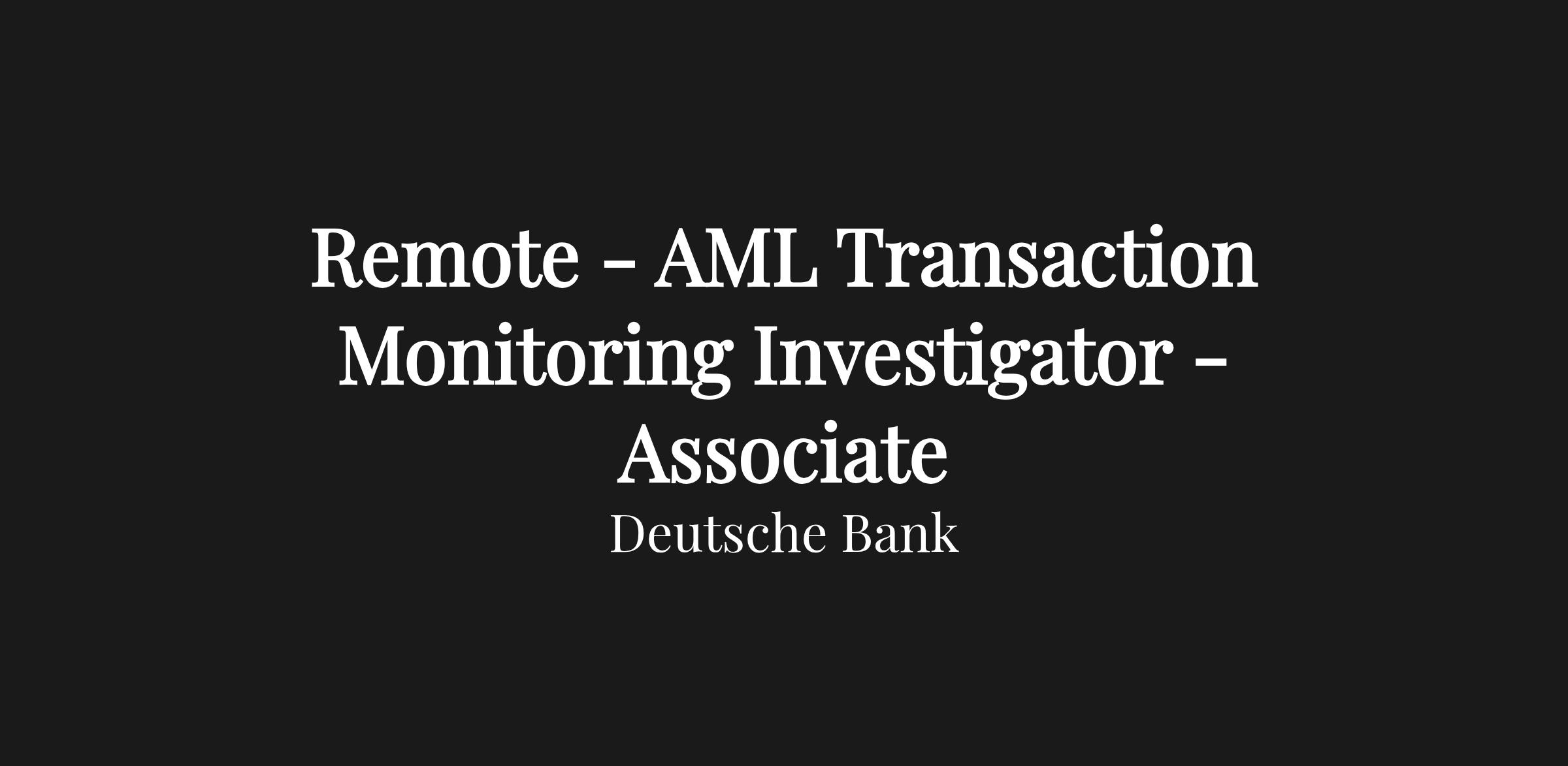 Minimum of a bachelor’s degree or equivalent work experience. Relevant experience as an Anti-Money Laundering (AML) investigator in a transaction monitoring and SAR writing capacity or equivalent experience