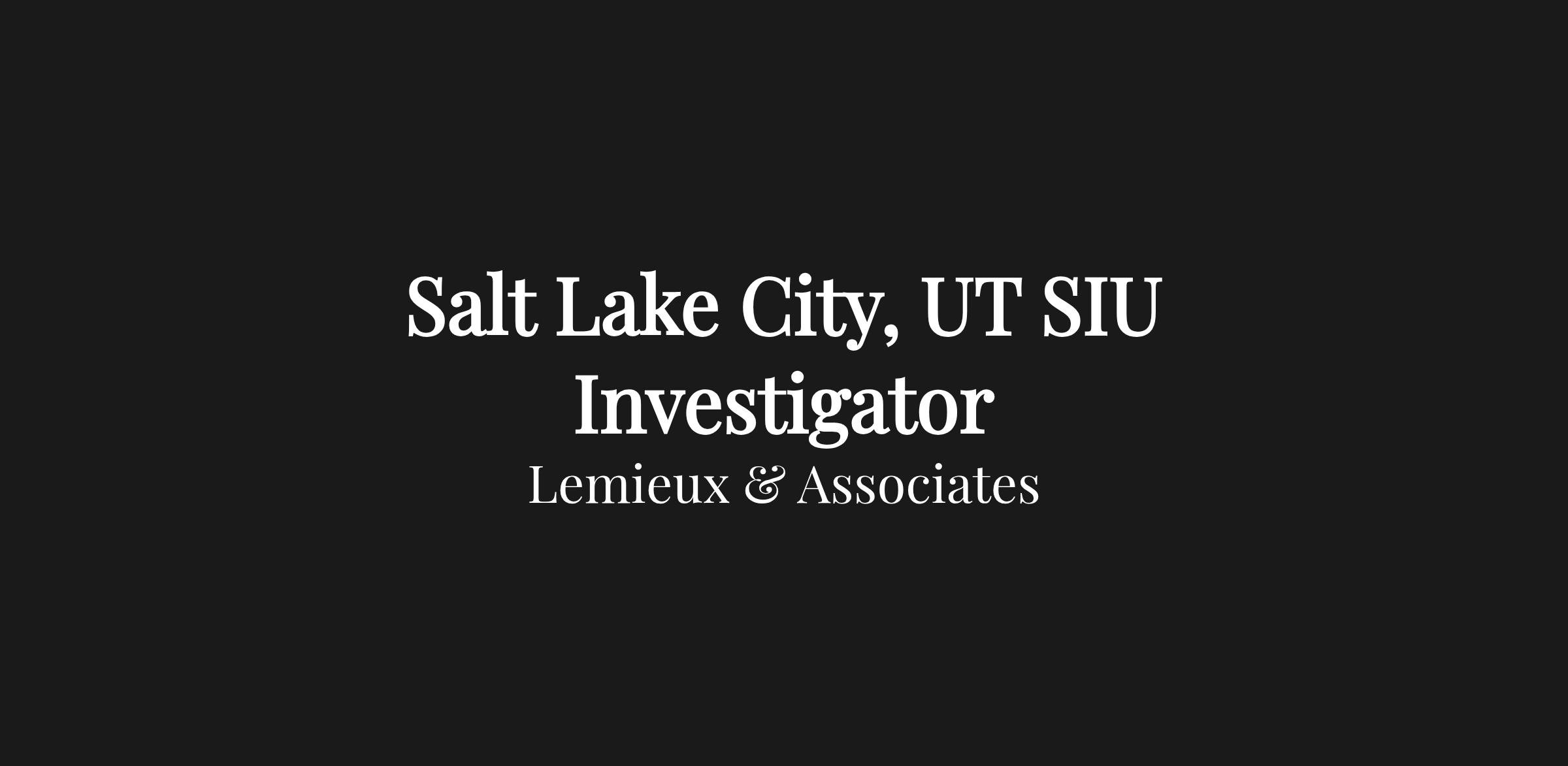 At Lemieux & Associates, we set the standard in investigative services. We are seeking experienced SIU Field Investigators in Salt Lake City, UT and surrounding areas on a part-time basis. Enjoy flexible hours, competitive pay, and opportunities for professional growth.