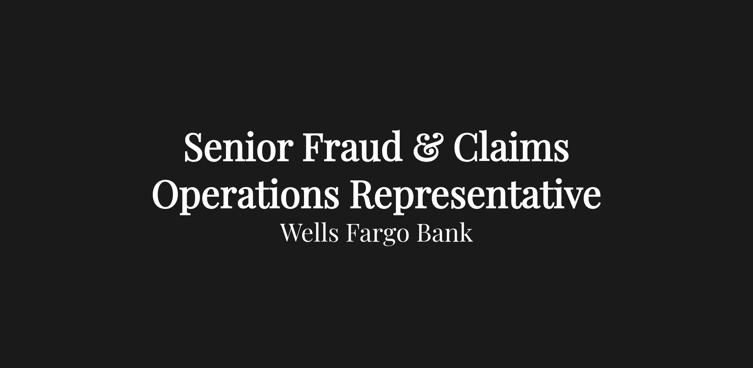 Wells Fargo is seeking a Senior Fraud and Claims Operations Representative in New Account Originations within Fraud and Claims Management. Learn more about our career areas and business divisions at wellsfargojobs.com.
