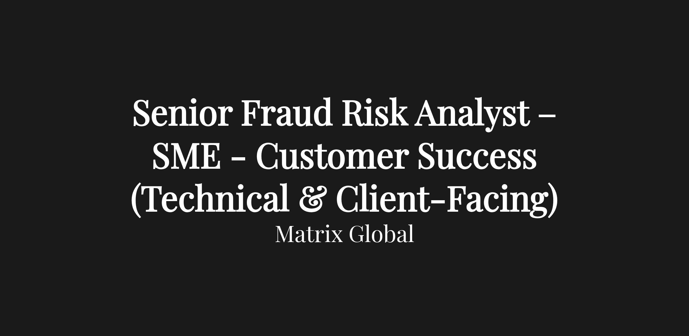 Matrix IFS is seeking a Senior Fraud Risk Analyst to join our Customer Success organization. This is a high‑impact, technical, and client‑facing role, supporting major financial institutions, merchants, and enterprise clients in leveraging our machine‑learning–driven fraud and financial crime platform.