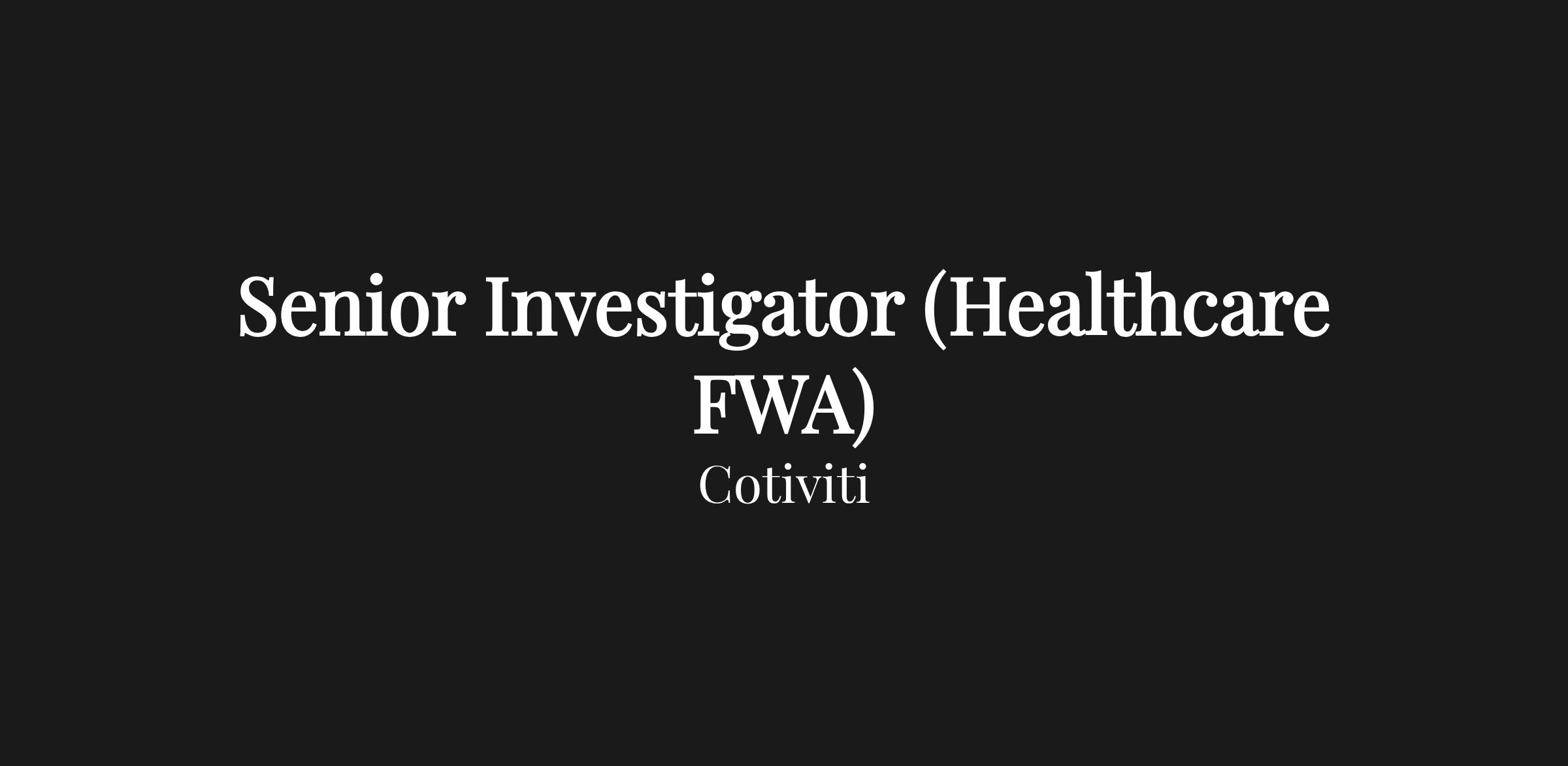 As a Senior Investigator, you will investigate suspected incidents of healthcare fraud, waste, or abuse through data analysis (a high level of proficiency with Excel is required). This is not a physical investigator role.