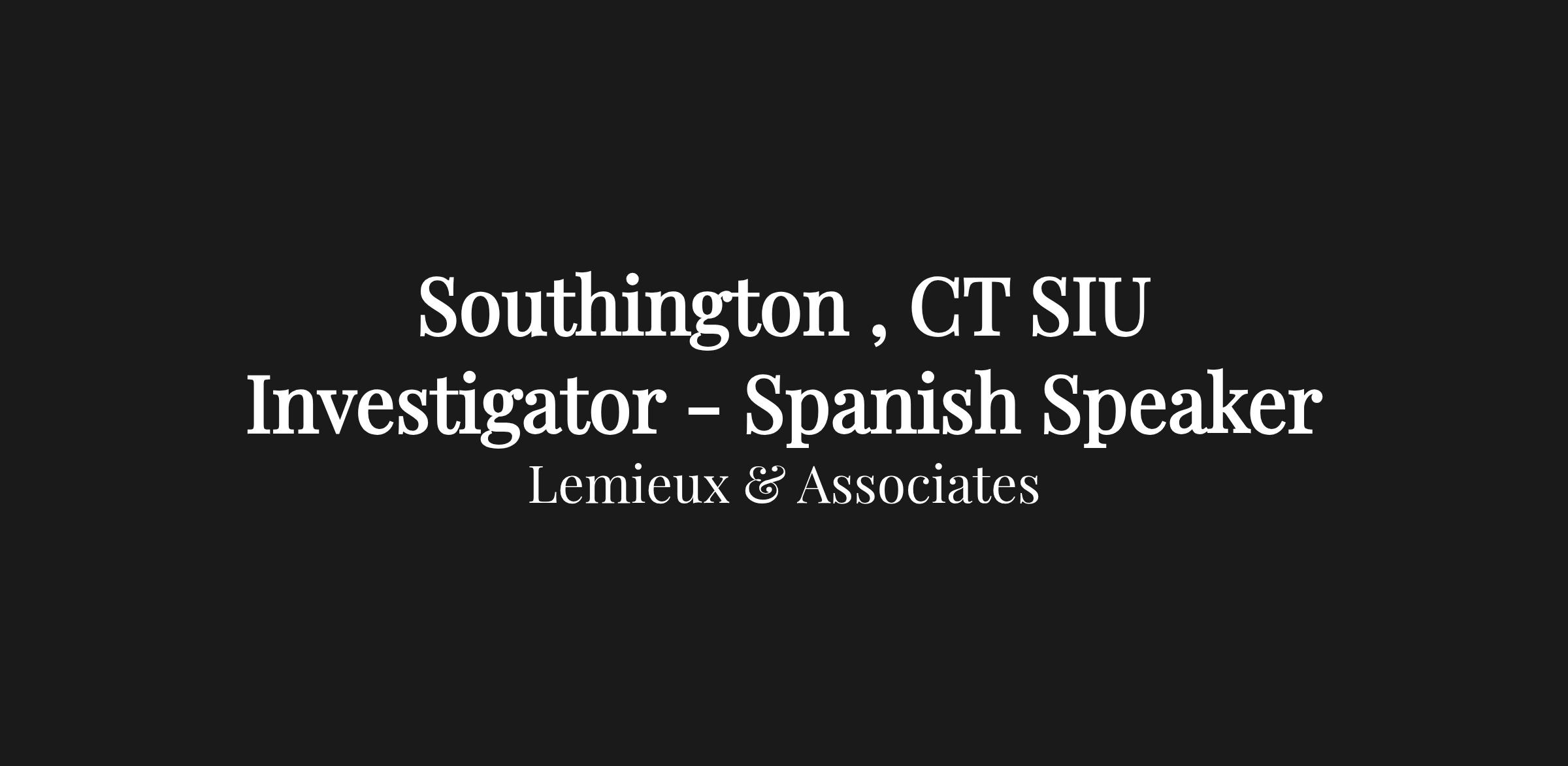 - Must have SIU/Claims investigation experience as a Private Investigator or Fraud Investigator and live in the Southington area.