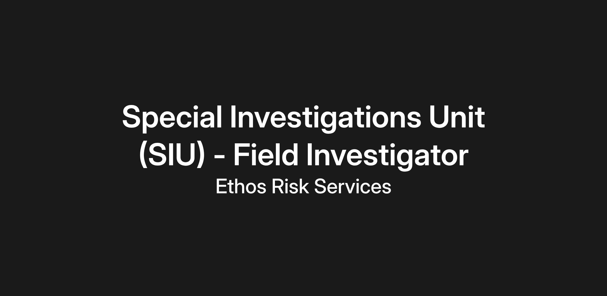 Our dynamic Ethos team is seeking a Special Unit Investigations (SIU) Field Investigator to conduct field investigations, gather and analyze evidence, and produce detailed reports that support claims decisions. You'll work both independently and collaboratively, often traveling to accident scenes, interviewing witnesses, and uploading documentation into our claims system.